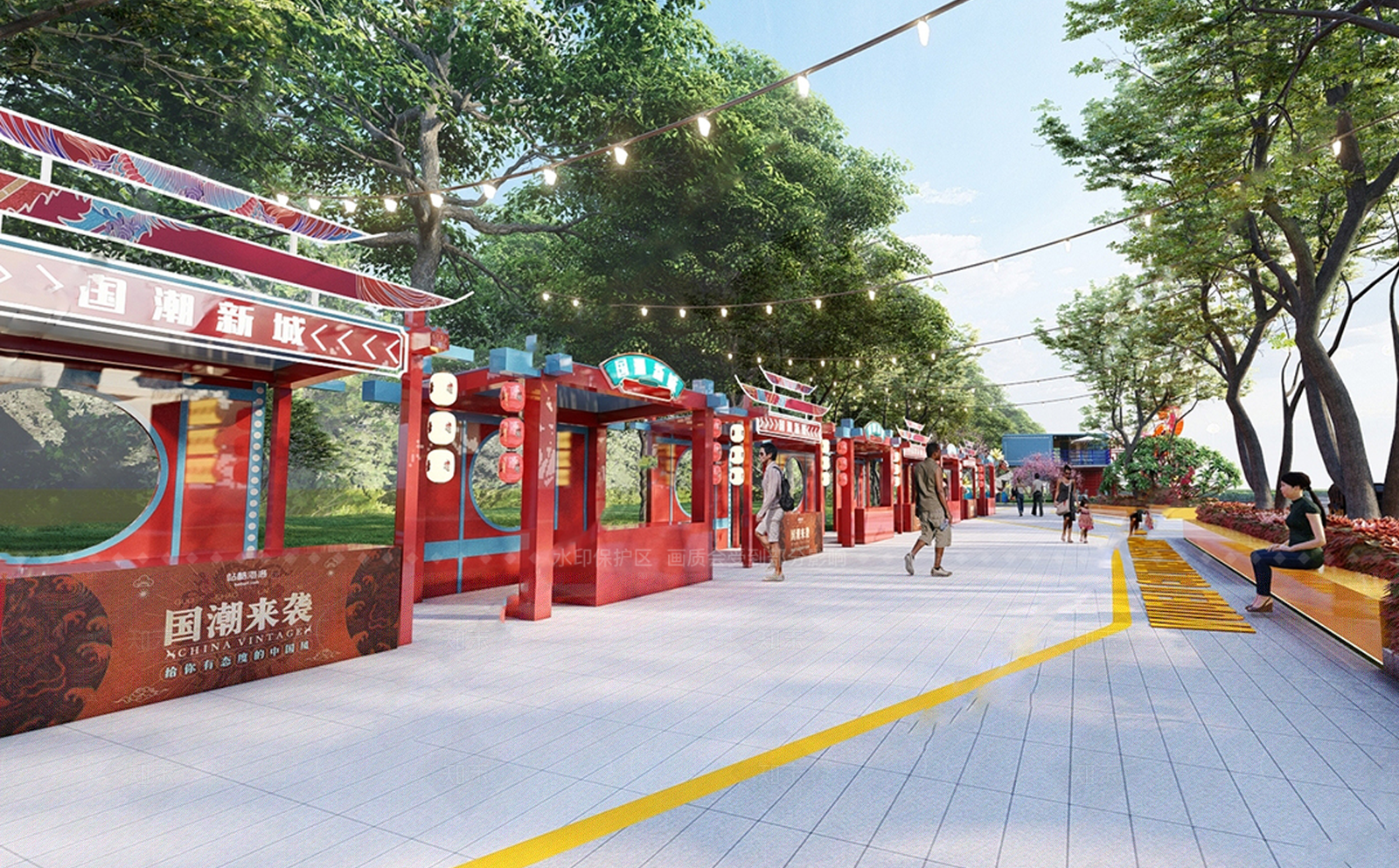 现代新中式商业街 商业街 夜市 小吃街 摊位外摆 美食街