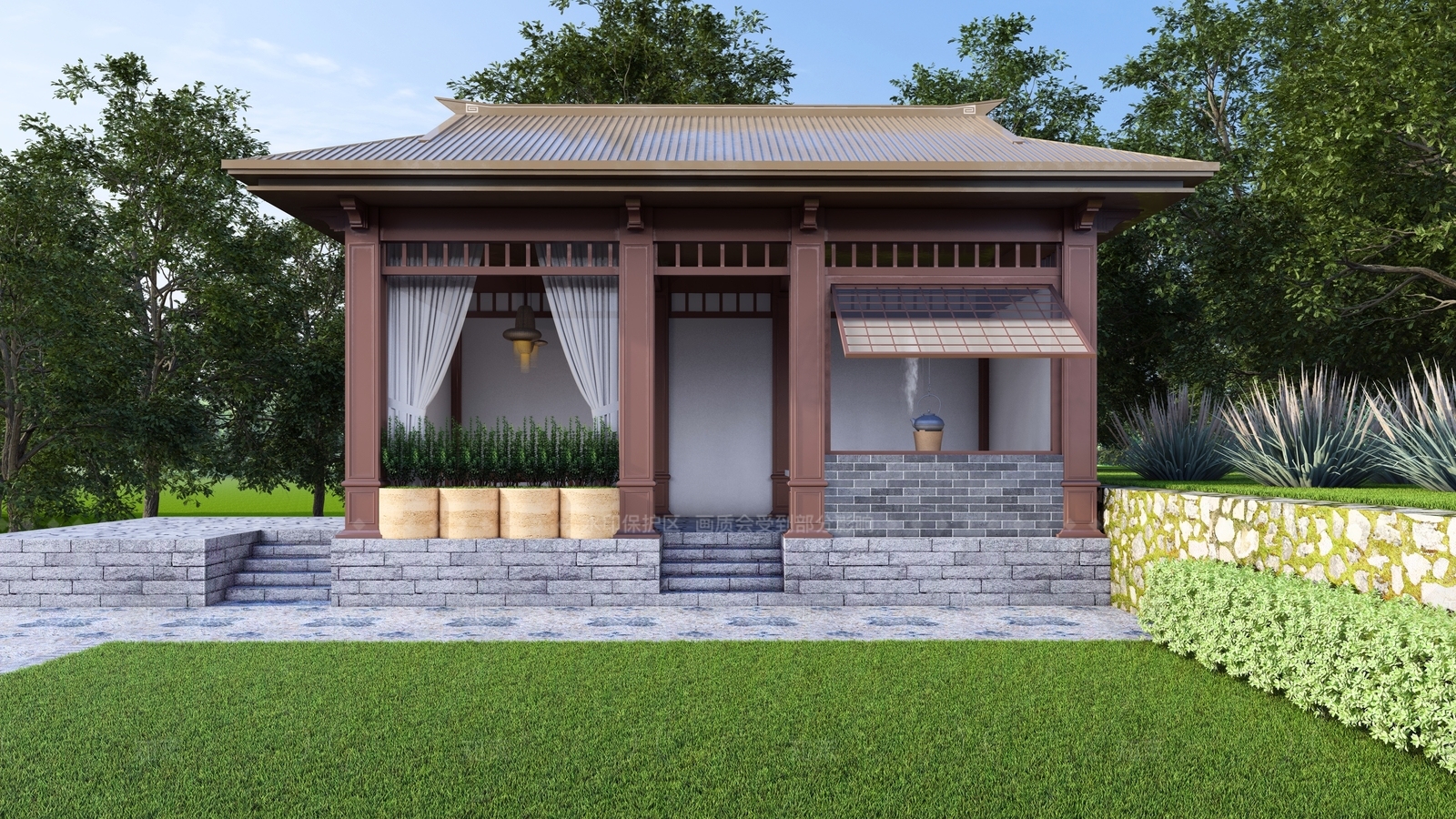 - 中式日式民宿建筑 茅草顶建筑 乡野山居 山地民宿建筑 日式禅意民宿