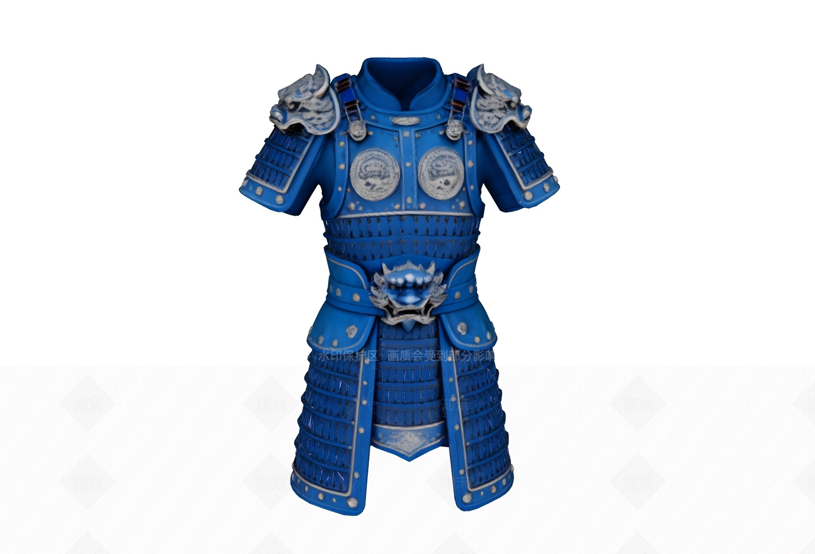 现代中式雕塑 铠甲 蓝色盔甲 甲胄 AIGC 护具