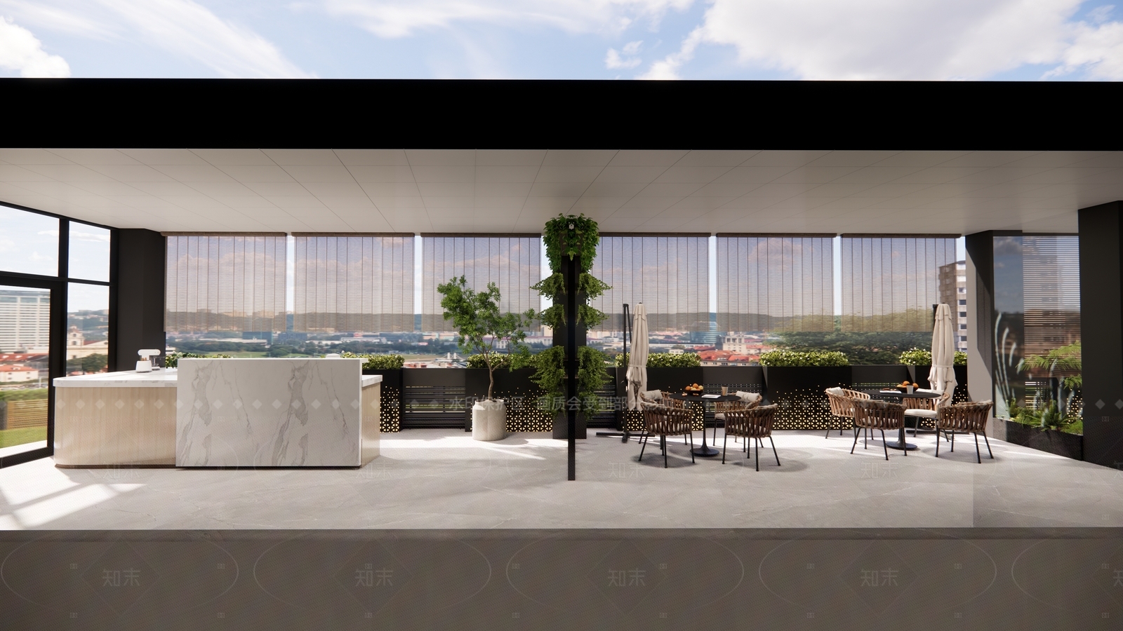 现代商业综合体景观 露台 休闲区域 水吧台 阳台景观