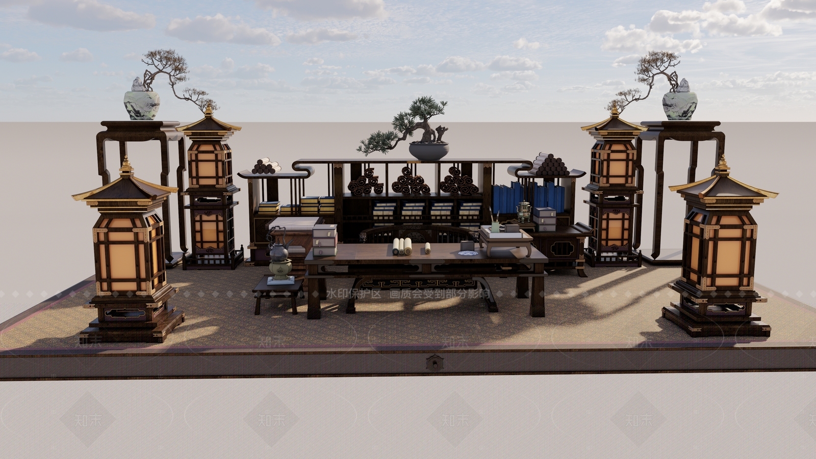 - 新中式影视 沙盘桌 沙盘 古代沙盘