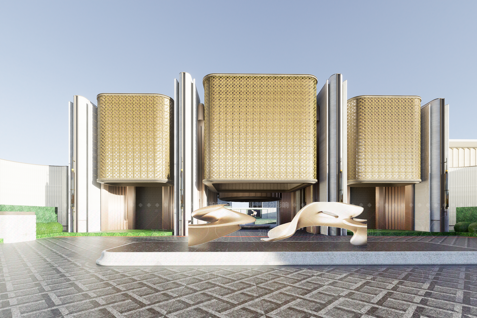 - 现代新中式入口大门 新中式大区门头 轻奢金属格栅门头 大区人车分离入口 对称式社区入口 住宅小区主入口