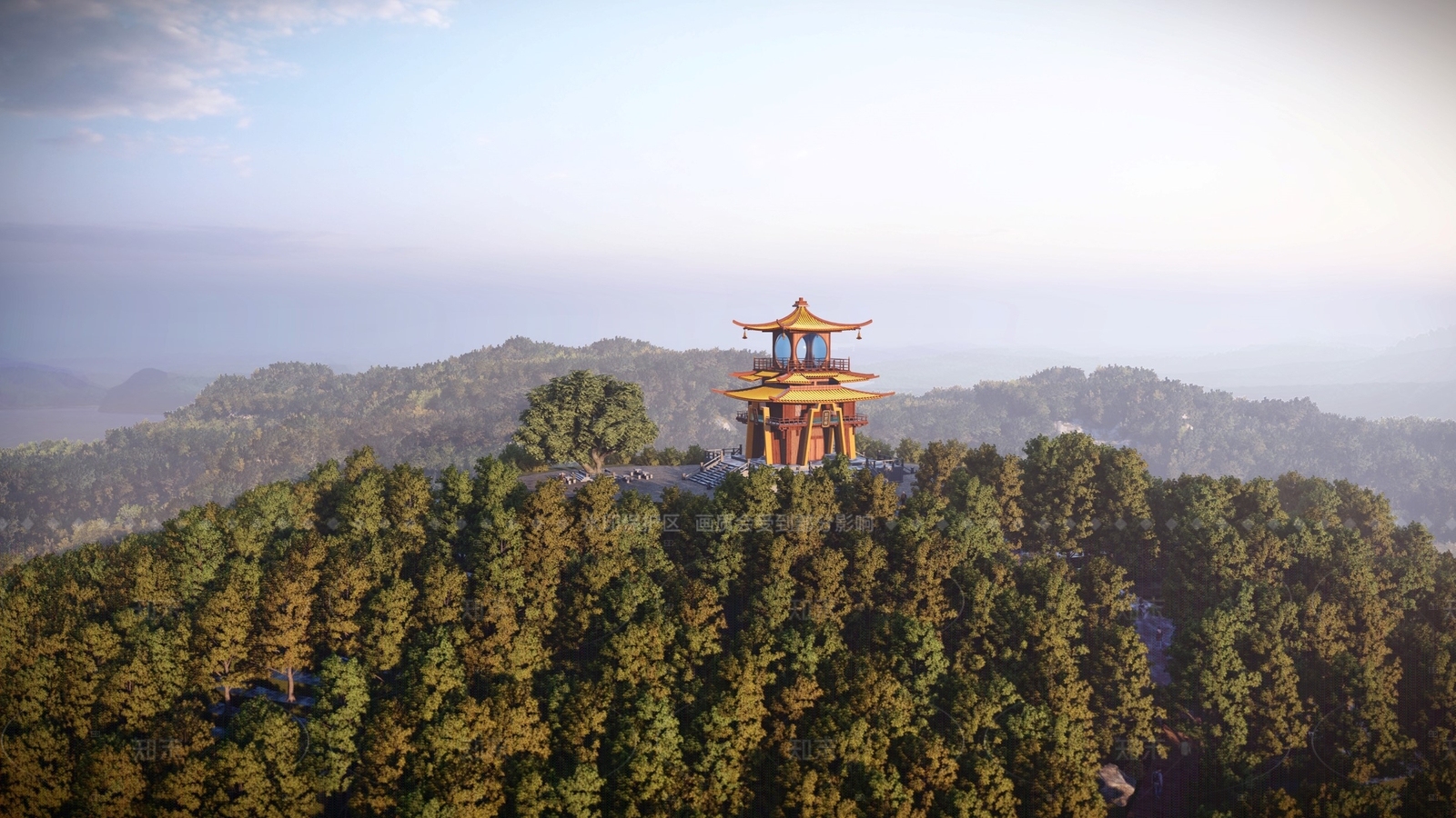 - 中式日式古建筑 天空城堡 仙宫 空中楼阁 中式塔楼 游戏动画楼阁