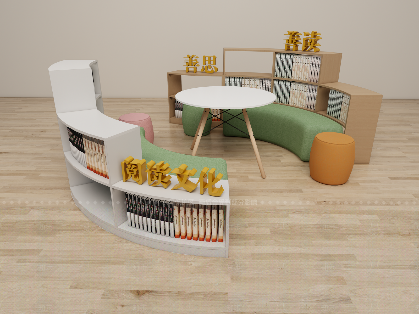 - 现代书柜 现代图书馆书架 书柜 图书馆书桌 休闲桌椅