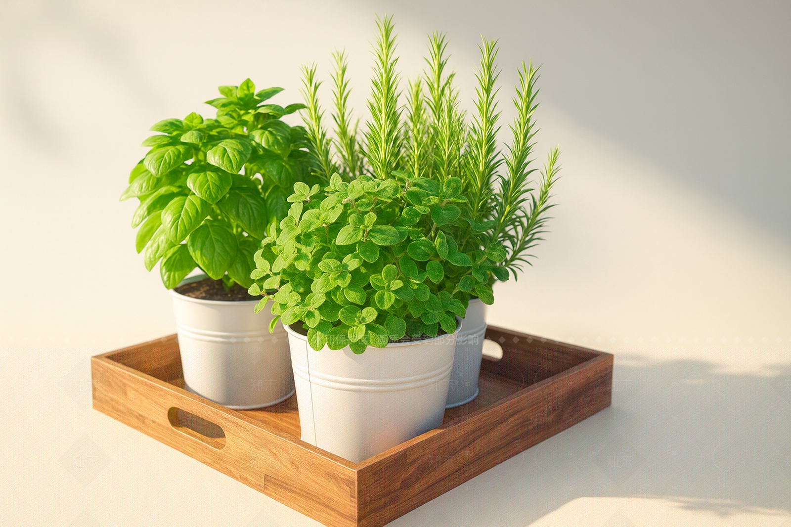 - 植物组合 香草植物 厨房植物 迷迭香 罗勒 薄荷
