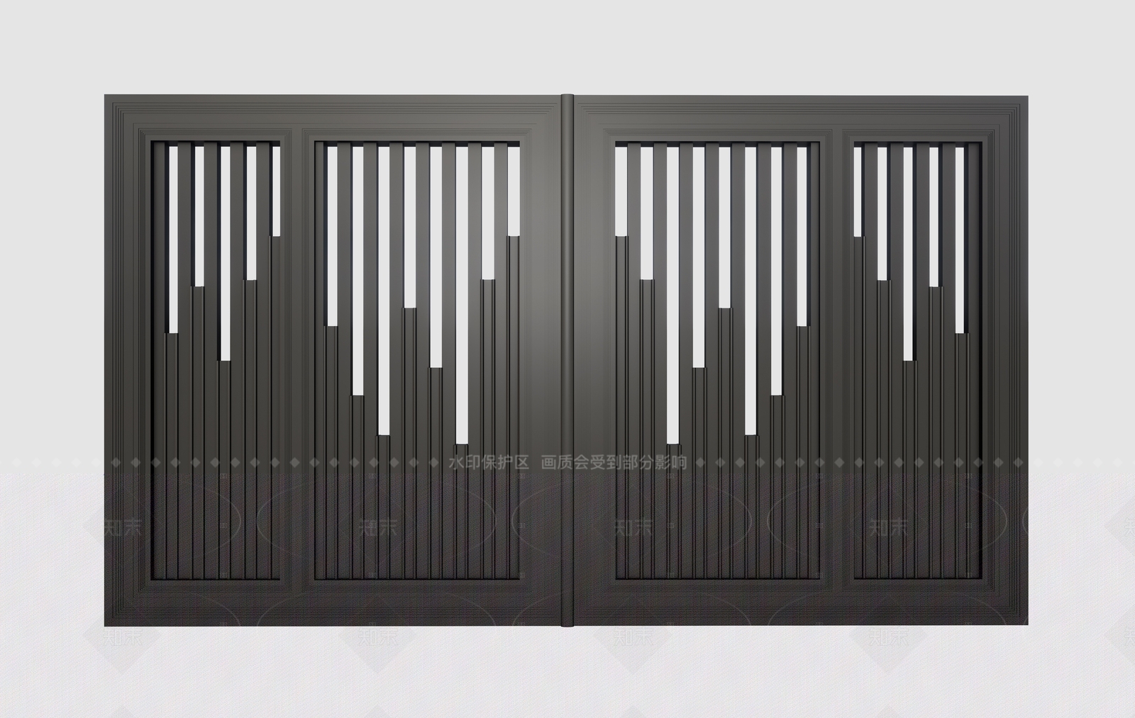 - 新中式现代庭院门 庭院大门 新中式大门 2d配件 对开大门 别墅围栏护栏