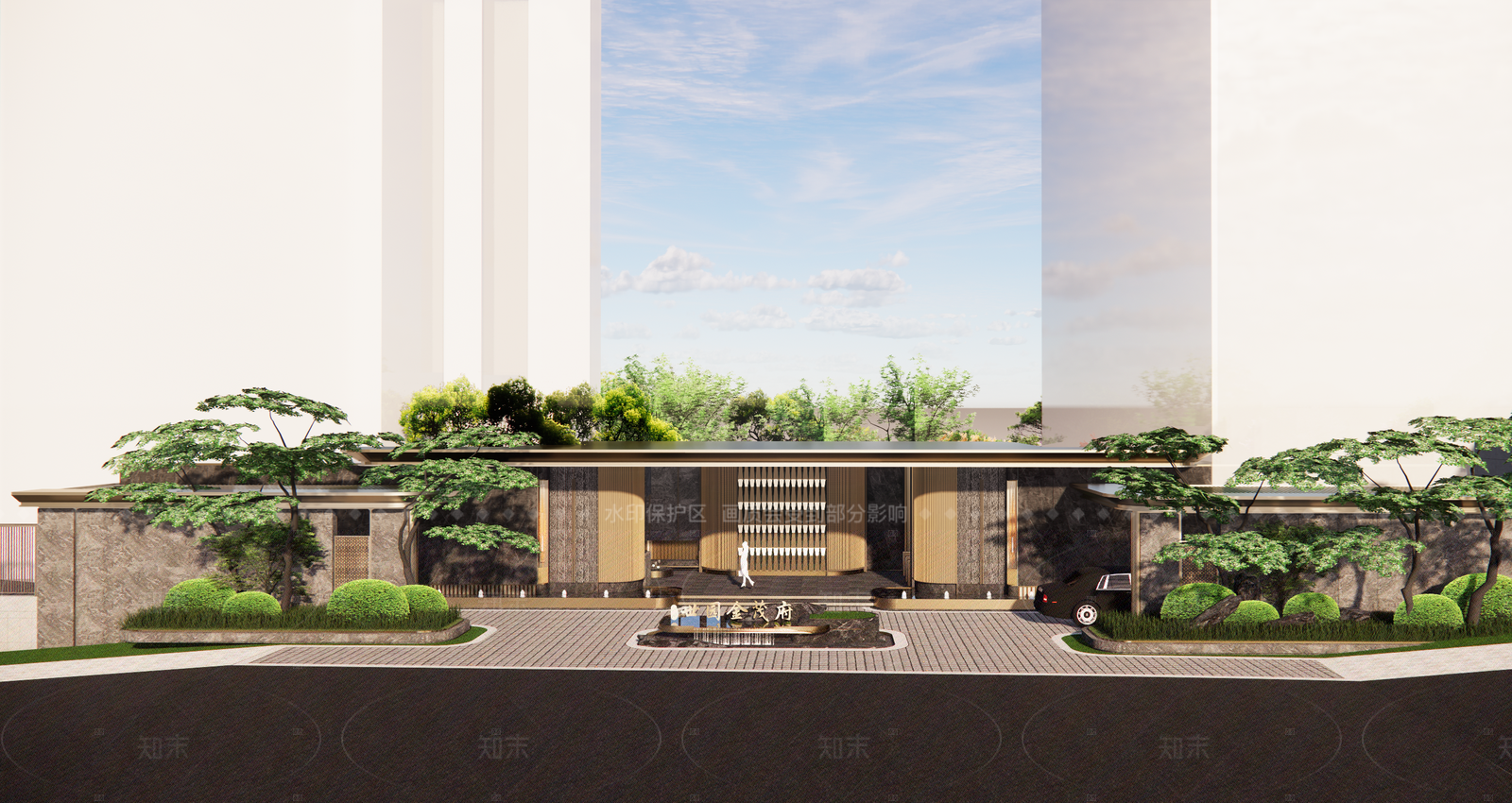 - 现代轻奢入口大门 现代轻奢小区大门 人车分流社区大门 小区环岛落客入口 庭院式小区入口 世园金茂府主入口