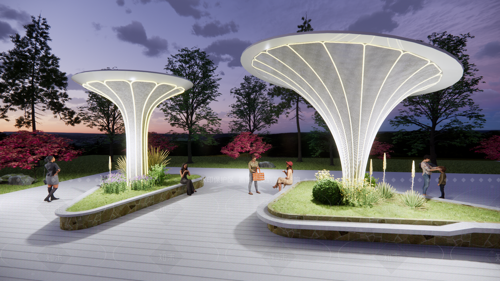 - 现代轻奢艺术装置 媒体装置 互动装置 伞形雕塑