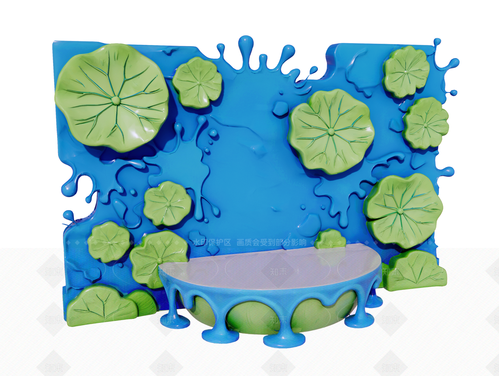 - 现代景墙 池塘荷叶浮雕景墙 荷叶艺术装置 荷叶商业美陈 网红互动打卡装置 景观景墙互动小品