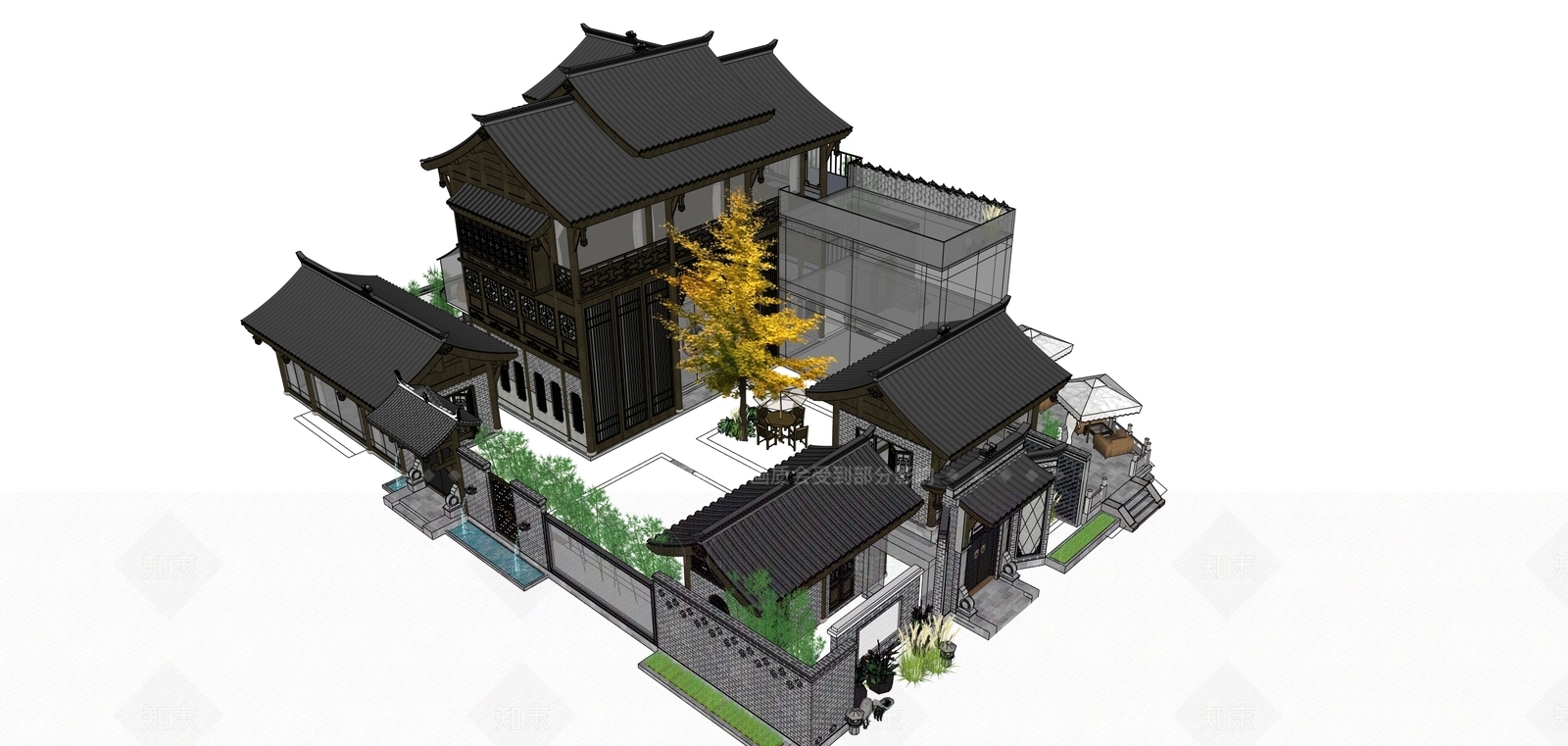 - 新中式中式古建筑 传统现代院落 小青瓦木构 特色院落 川西院落 创意商业院落