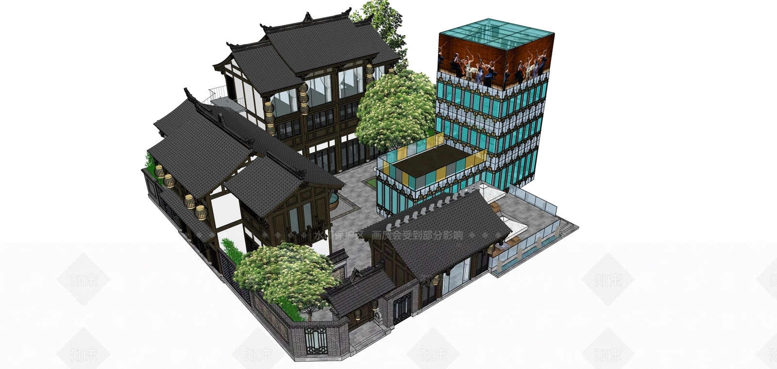 - 现代新中式古建筑 文创园 古镇改造 仿古建筑 老城建筑