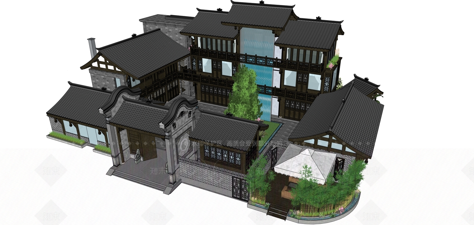 - 新中式中式古建筑 传统现代院落 小青瓦木构 特色院落 川西院落 创意商业院落