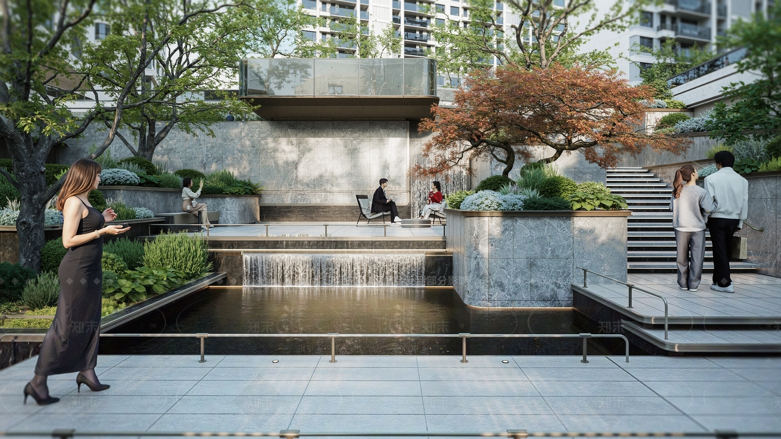 - 现代轻奢小区景观 入口 高差 会客厅 水景 台阶