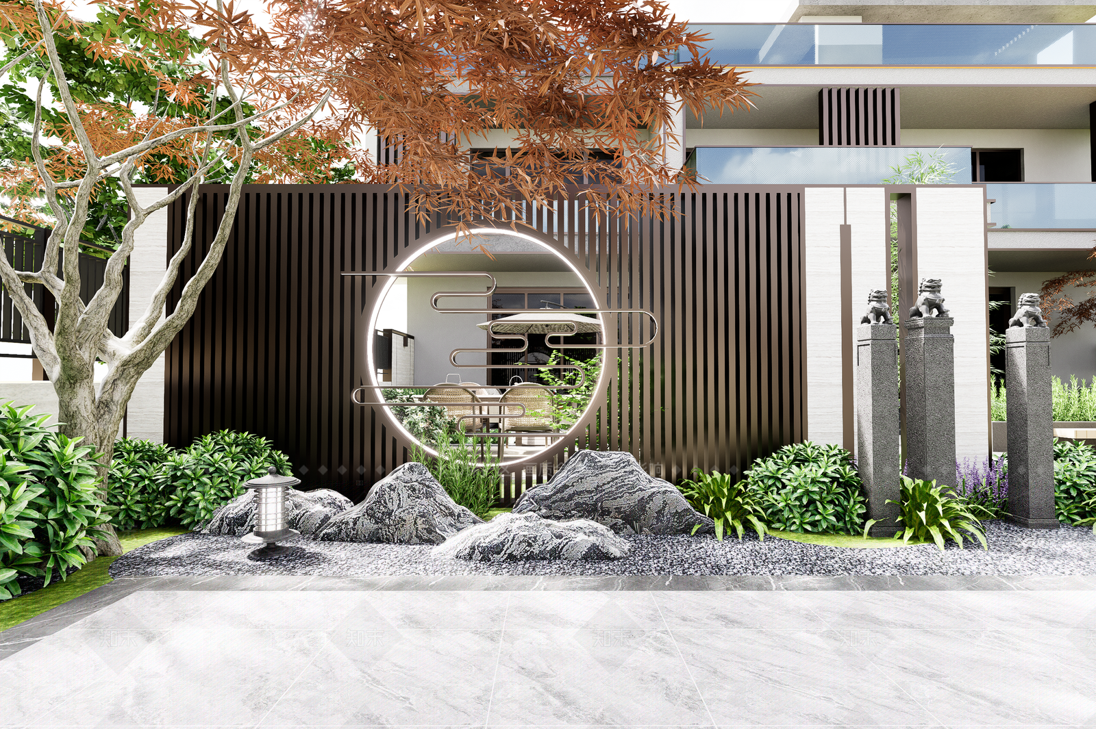 - 新中式景墙 照壁影壁 中式庭院景墙 造型装饰景墙 庭院景墙 入口景墙