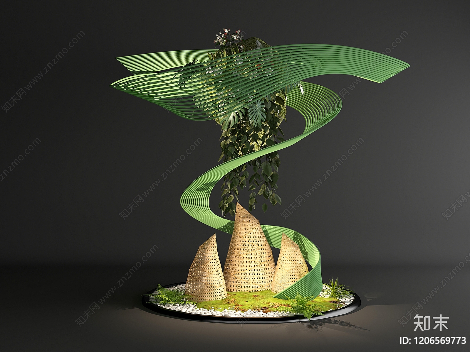 - 现代中式艺术装置 竹编笋装置 笋 竹编