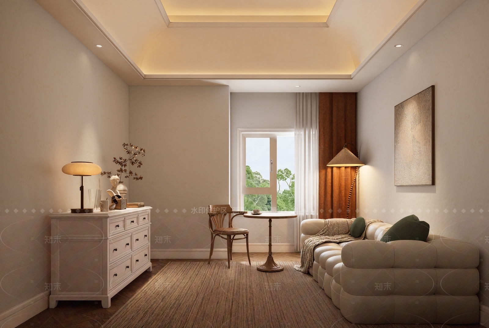 - 奶油侘寂家居客厅 包豪斯原木禅意 现代简约法式中古 沙发茶几组合壁炉 装饰摆件书架书柜 实木原木无主灯