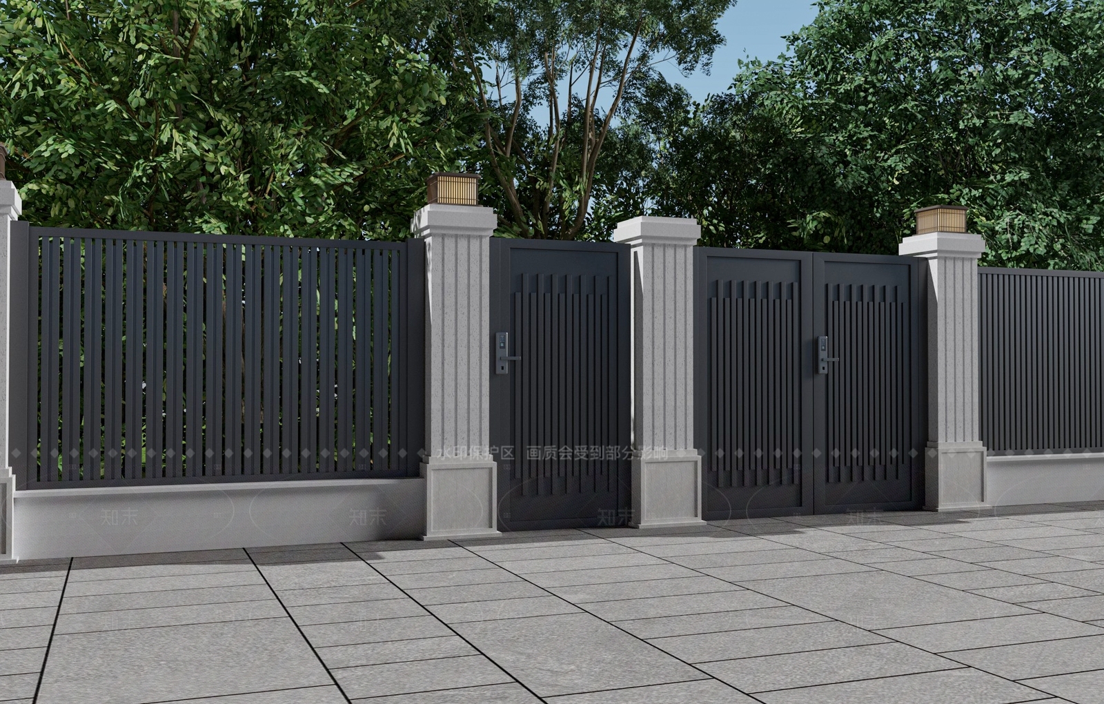 - 新中式现代别墅 二层别墅 别墅大门 庭院大门