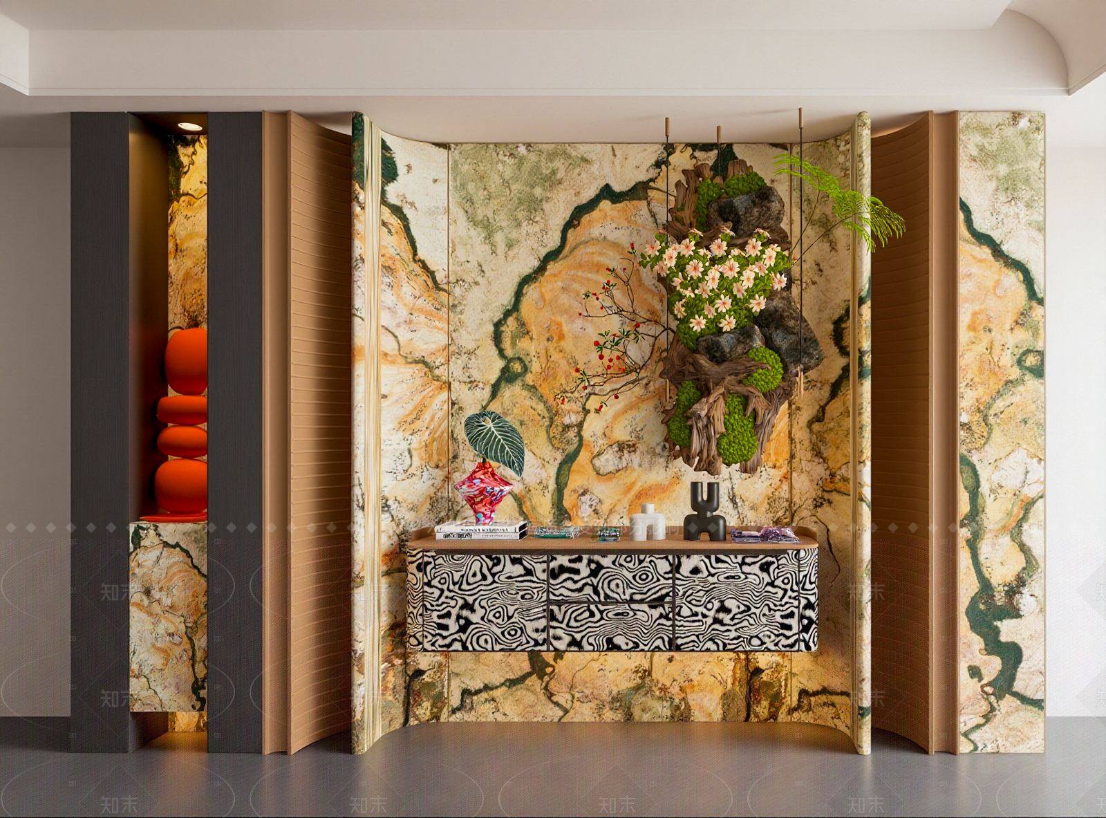 - 现代背景墙 轻奢玄关背景墙 玄关过道背景 端景台 艺术装置