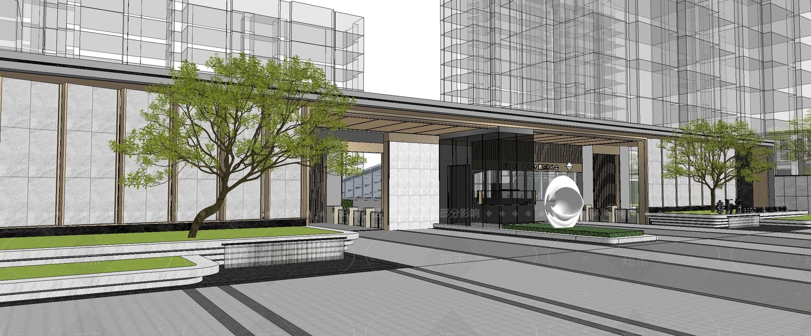 - 现代小区景观 小区入口景观 示范区前场景观