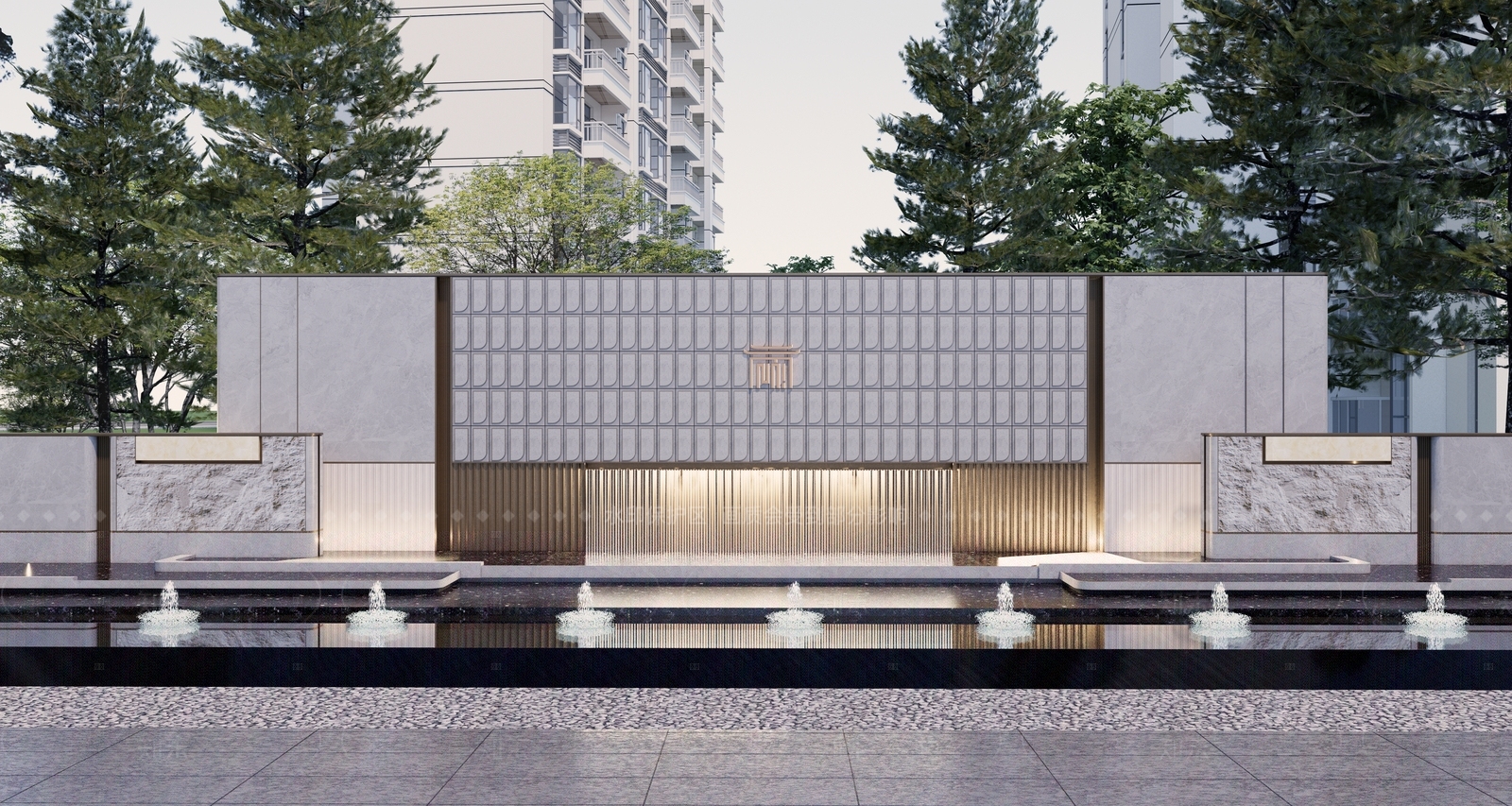 - 现代轻奢小区景观 示范区景墙 展示区对景景观