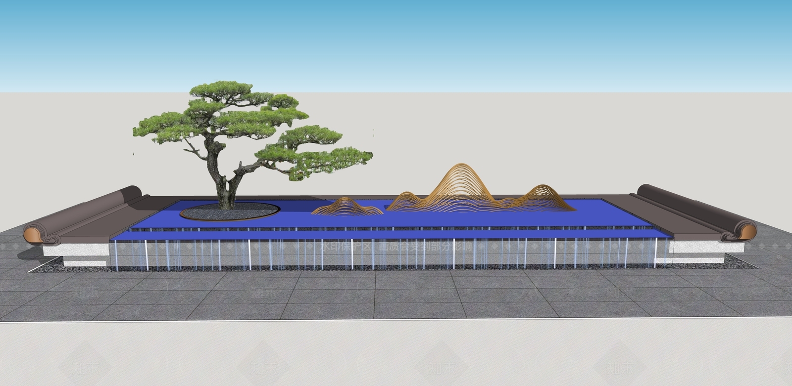 - 现代新中式其他水景设施 现代互动水景 现代跌水 庭院水景 镜面水景
