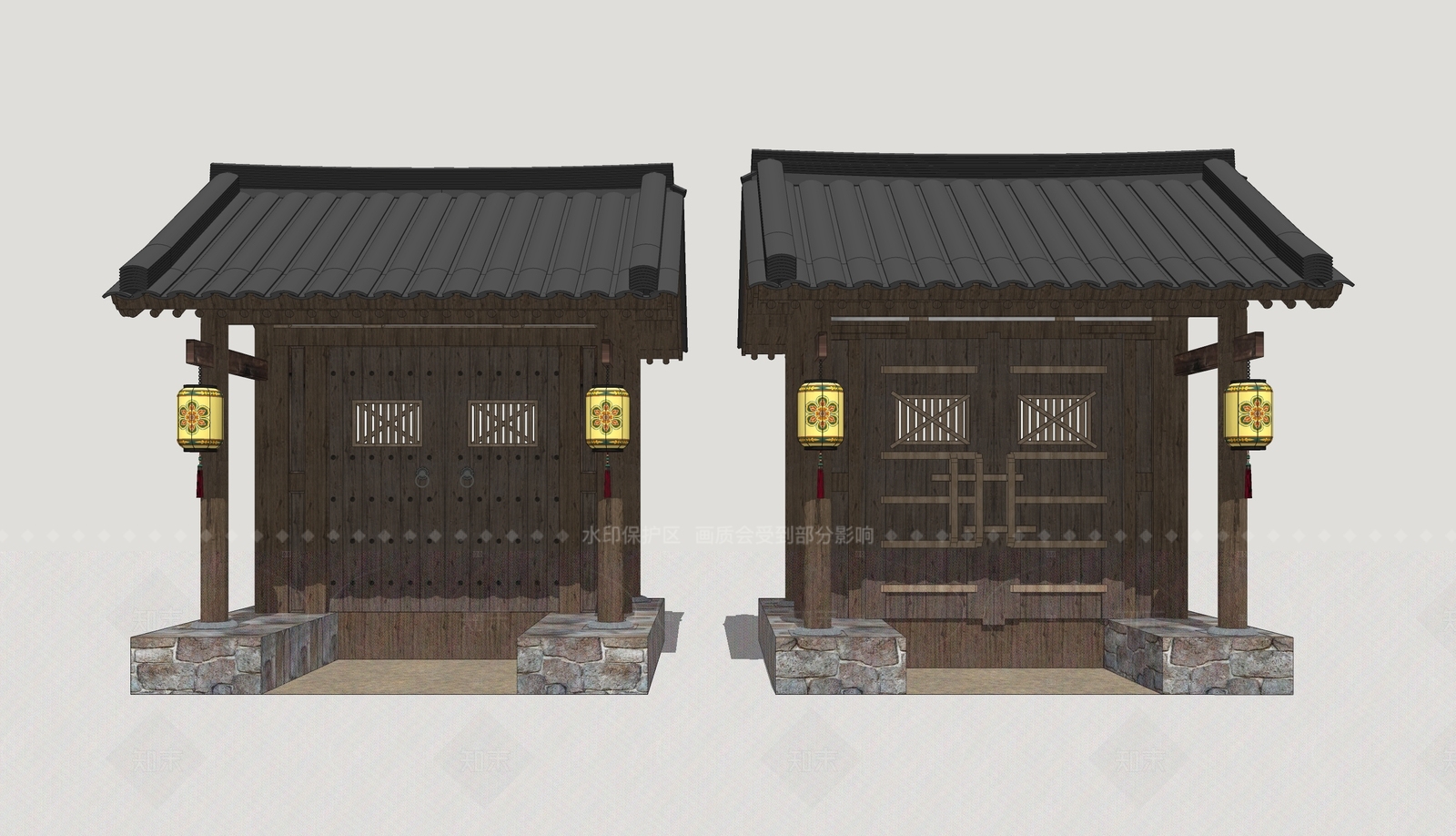 - 中式入口大门 乡村木门 庭院门 乡村入户门 景观大门