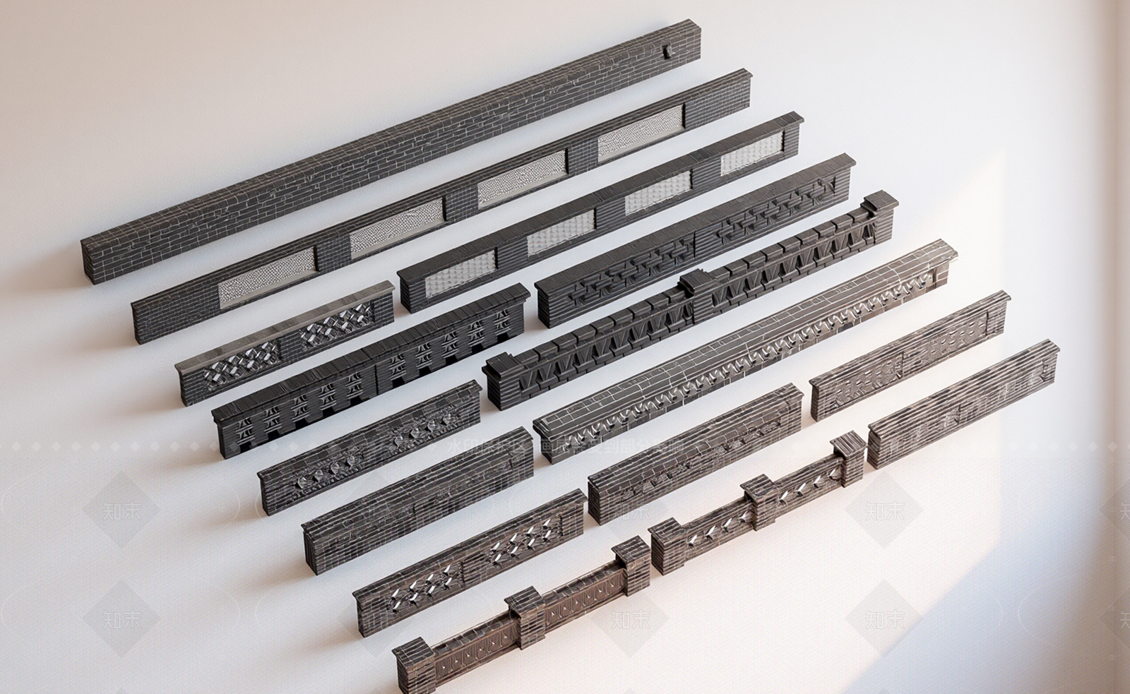 - 新中式景墙 新中式花池景墙 乡村矮墙 青砖墙景墙 镂空花墙