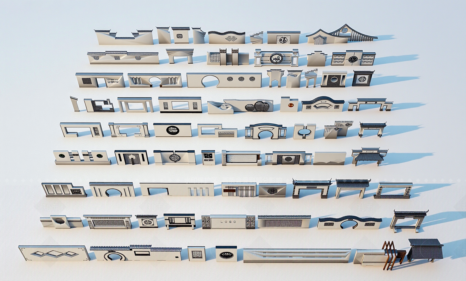 新中式景墙 新中式中式景墙 景墙围墙 马头墙