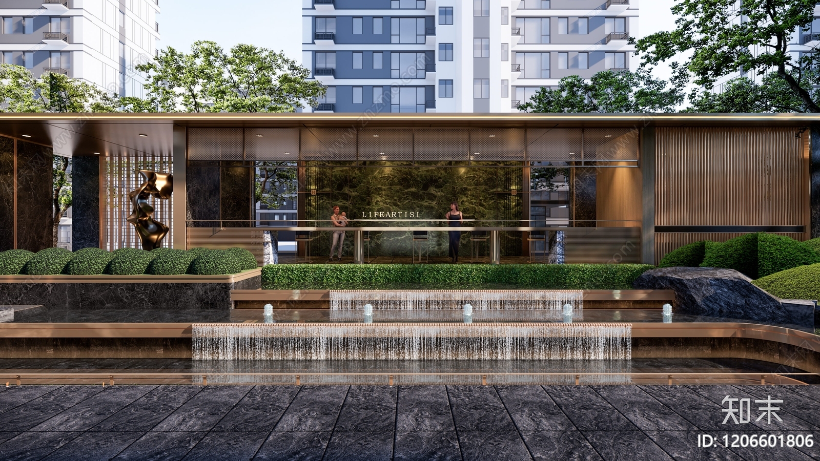 - 现代轻奢小区景观 入口 高差 会客厅 水景 台阶