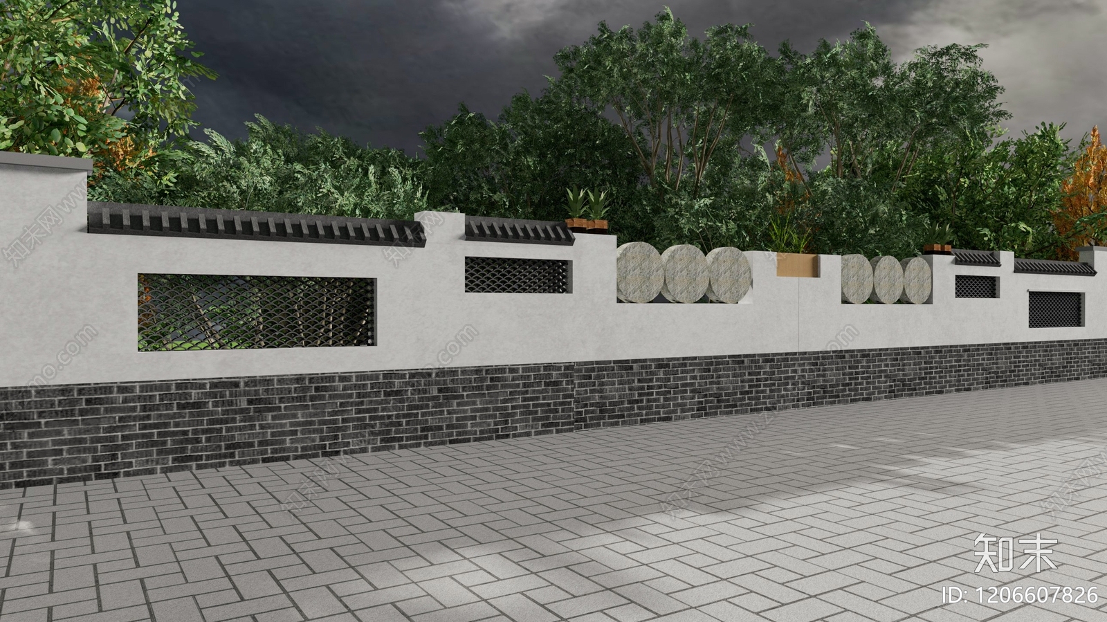 - 新中式景墙 新中式花池景墙 乡村矮墙 青砖墙景墙 镂空花墙