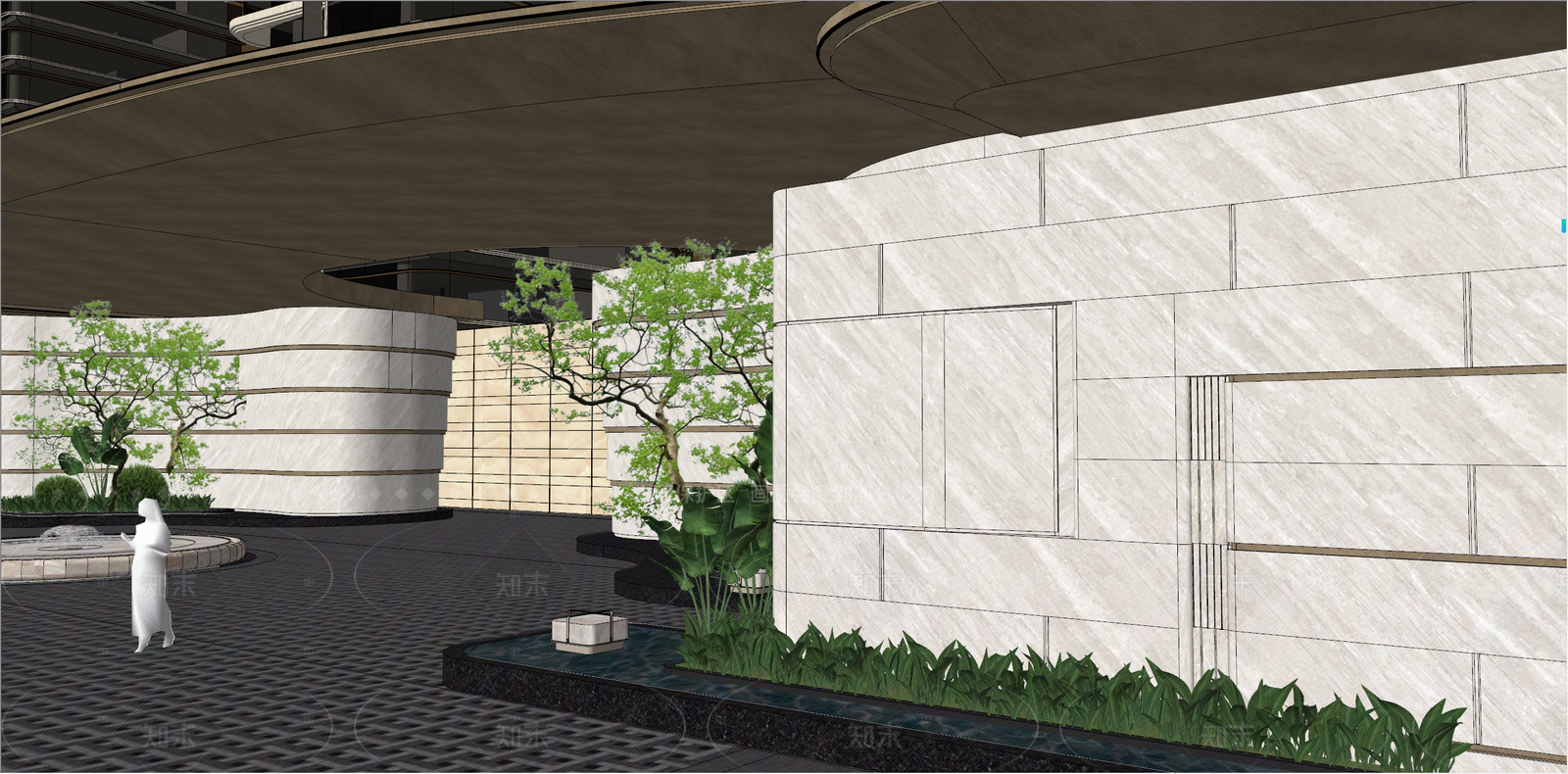 - 现代小区景观 展示区广场入口 连廊 架空层 会客室