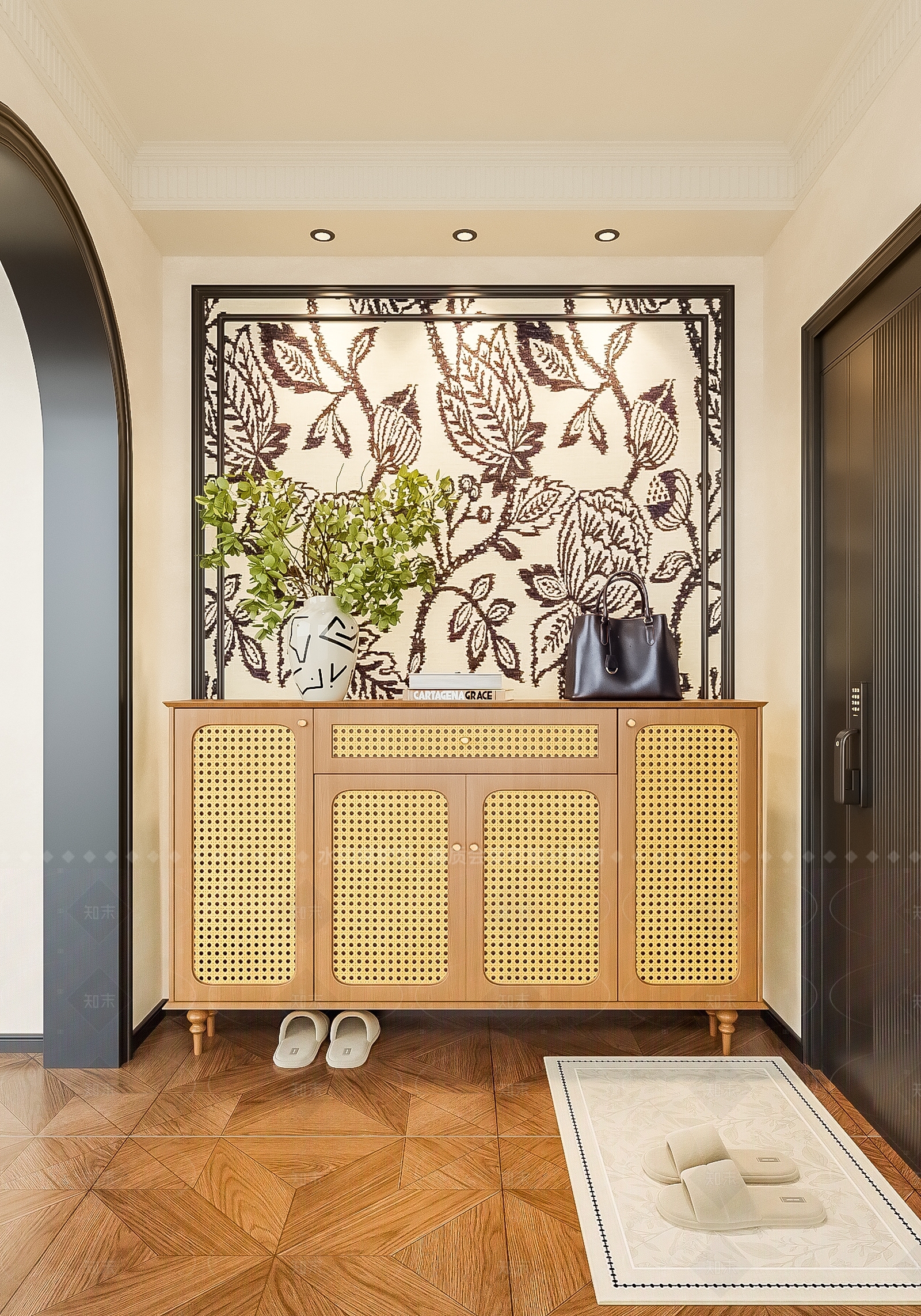 - 现代背景墙 轻奢玄关背景墙 玄关过道背景 端景台 艺术装置