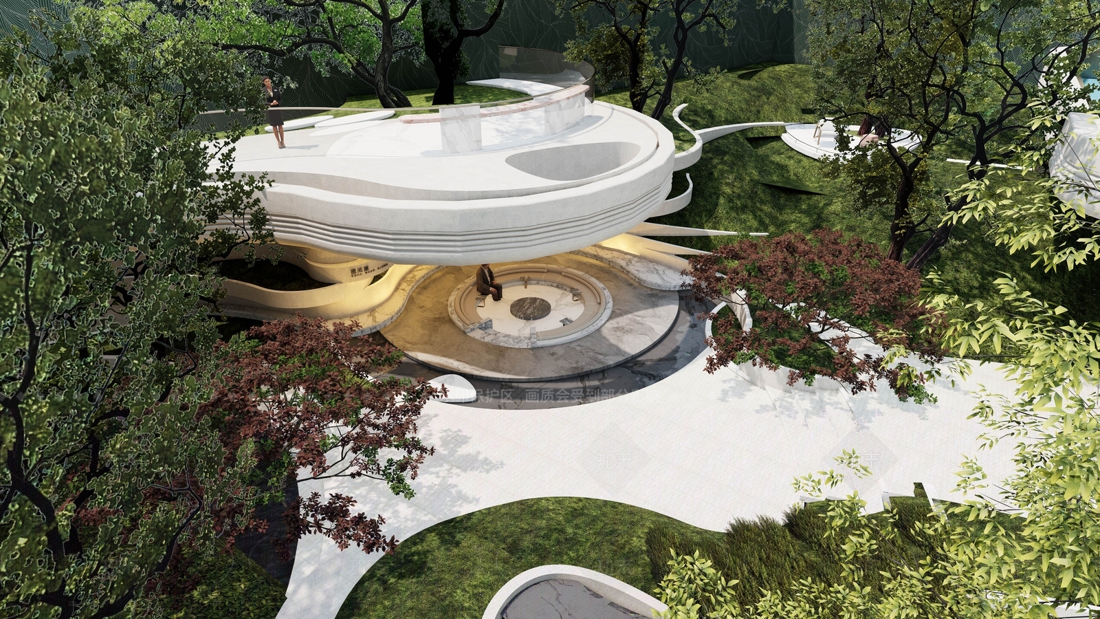 - 简约现代小区景观 招商揽阅示范区 示范区后场会客厅 圆形会客厅卡座 后场示范区景观 架空层
