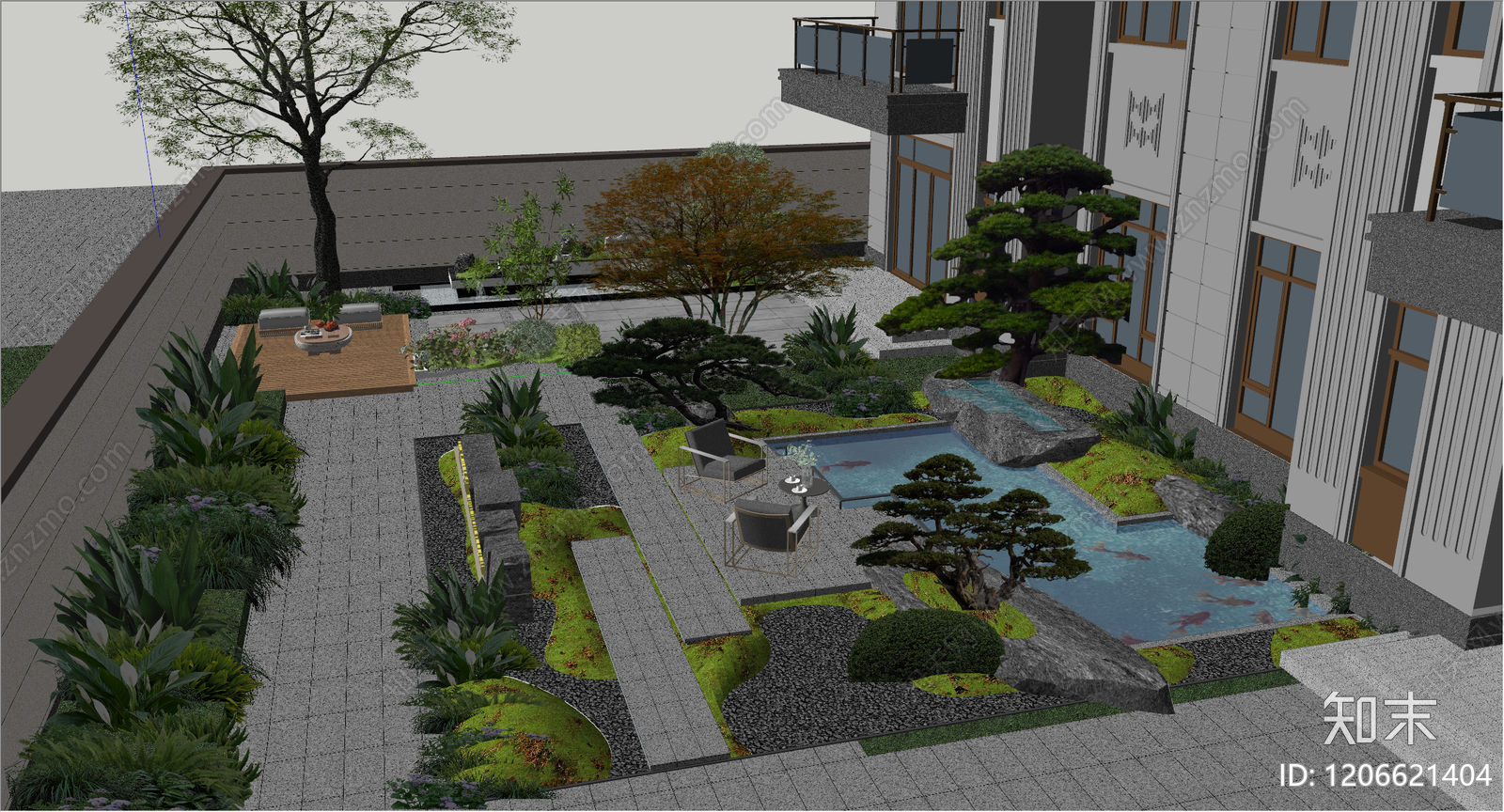 新中式中式别墅庭院 锦鲤鱼池 别墅鱼池 现代庭院