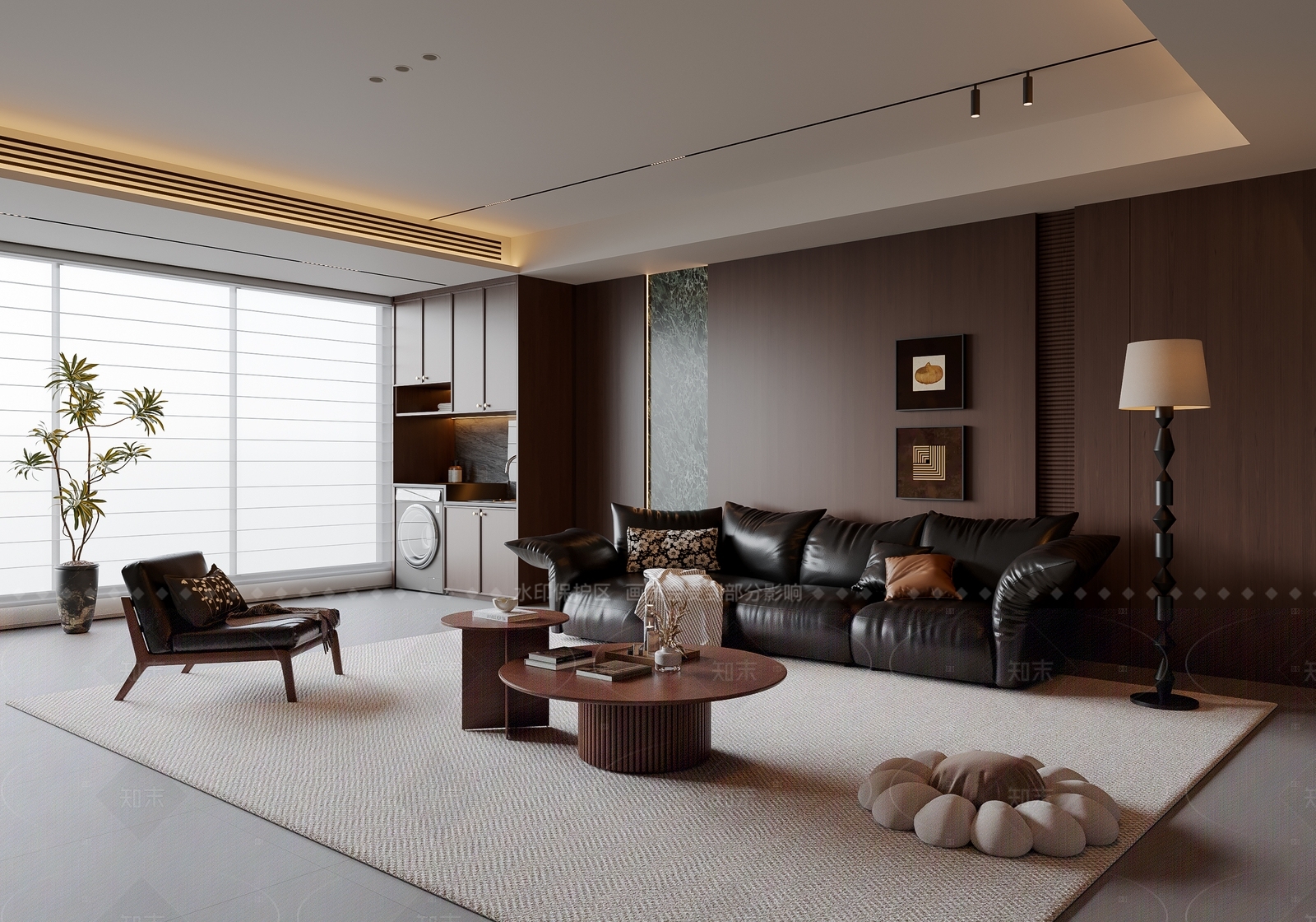 - 现代家居客厅 现代意式客厅 皮质沙发茶几组合 休闲椅 沙发背景