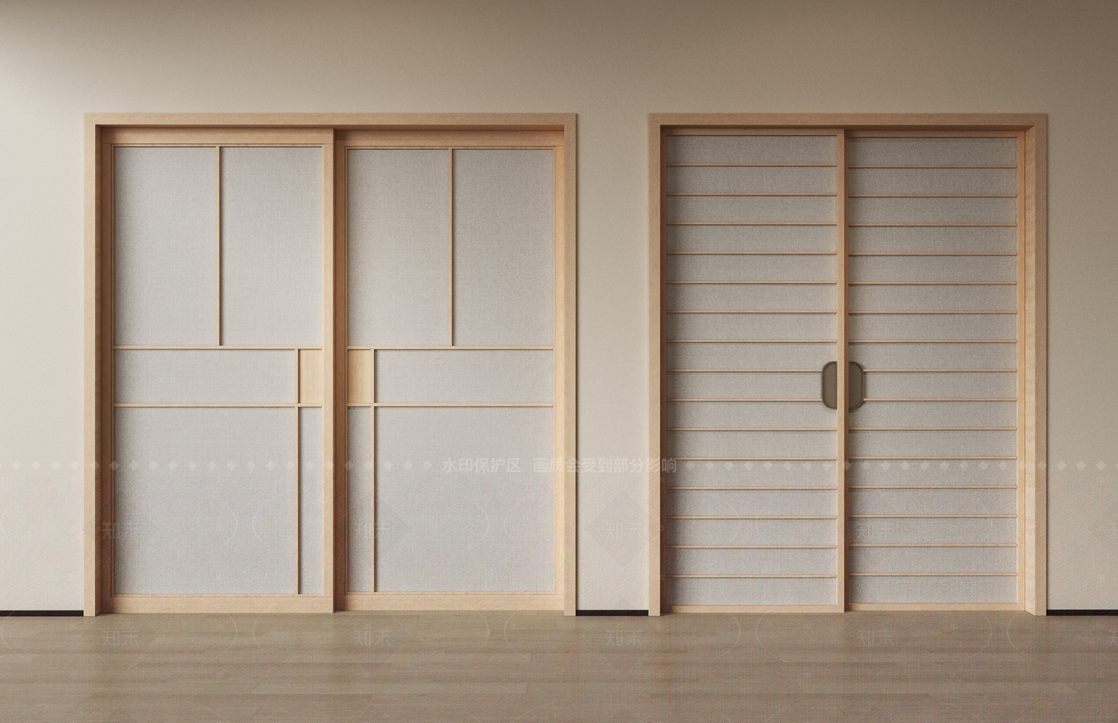 - 日式原木推拉门 推拉门 木门 轨道门 卧室推拉门 书房推拉门