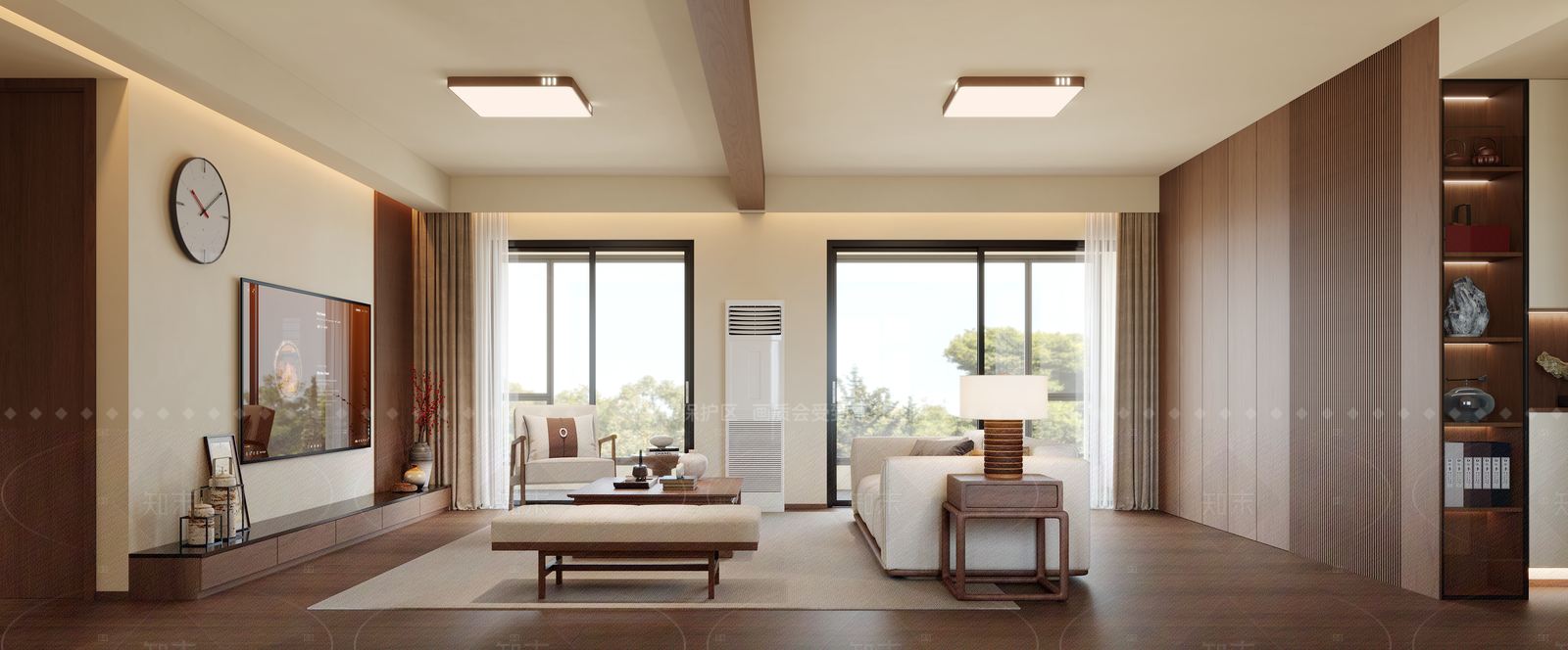 - 现代原木家居客厅 隐藏门 奶油风 小户型客厅