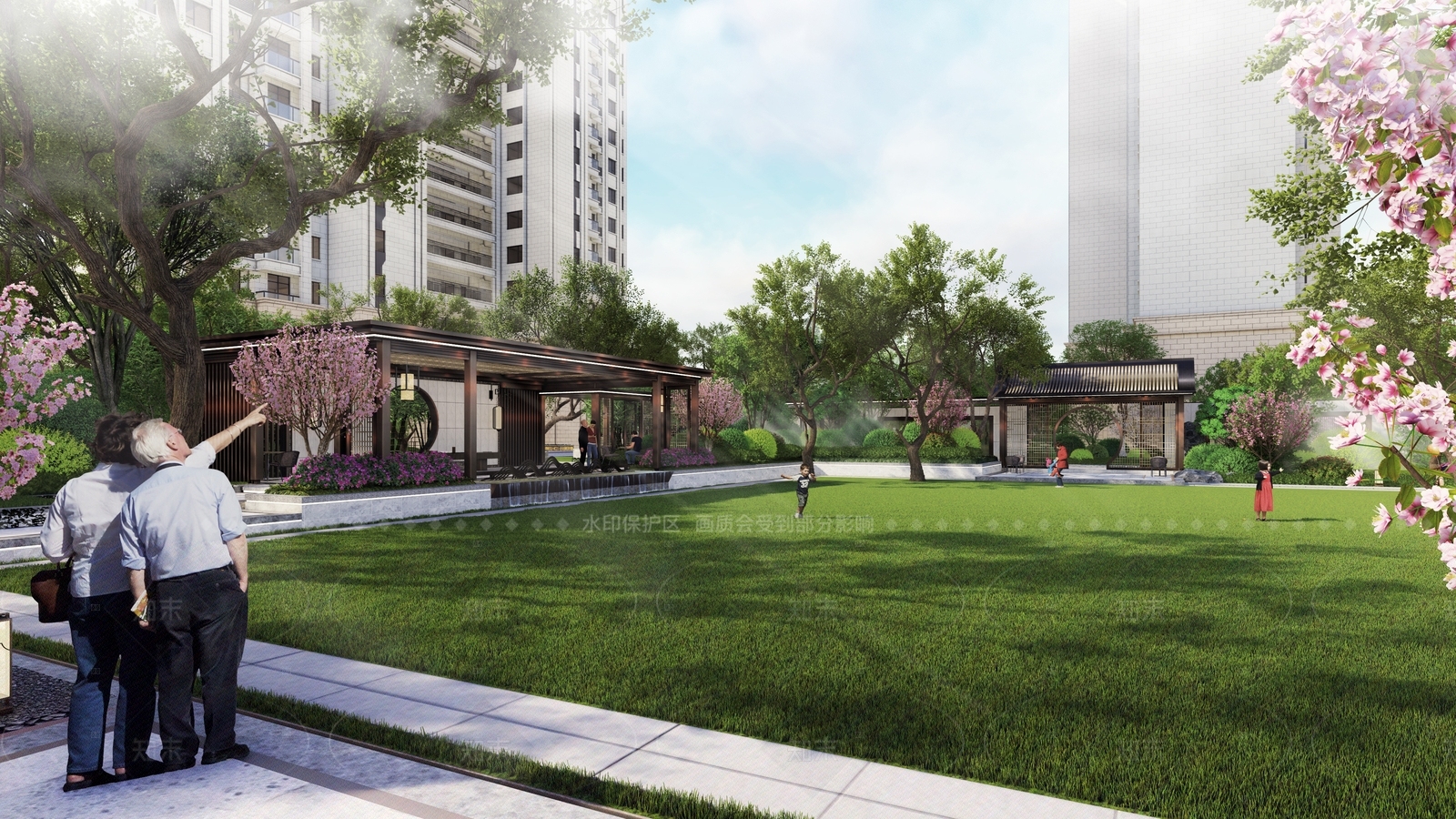 - 新中式小区景观 新中式 居住区 中式景观 社区景观