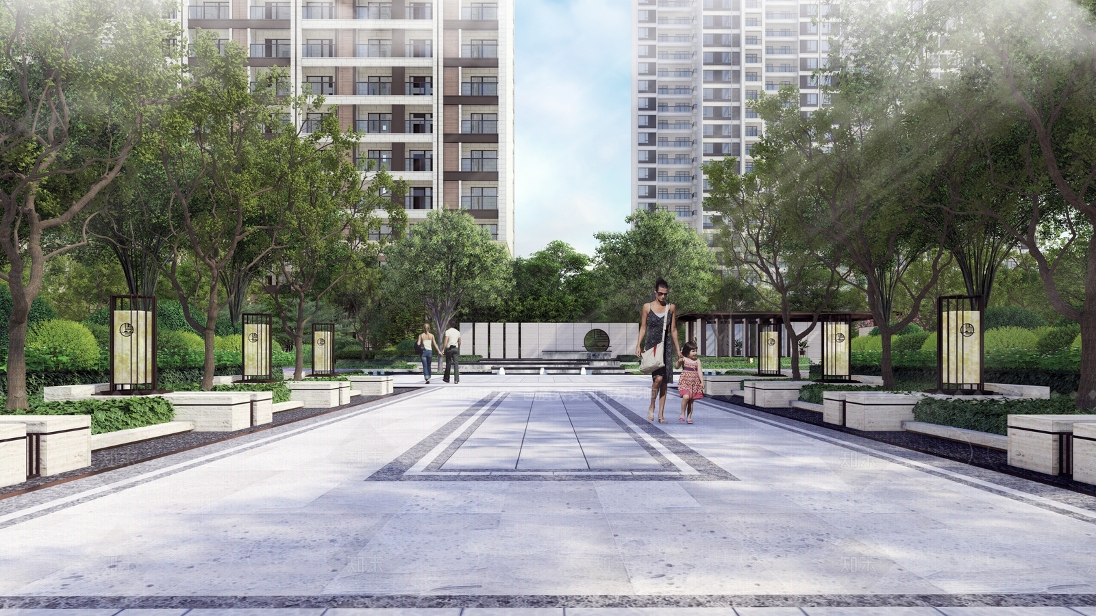 新中式小区景观 新中式 居住区 中式景观 社区景观
