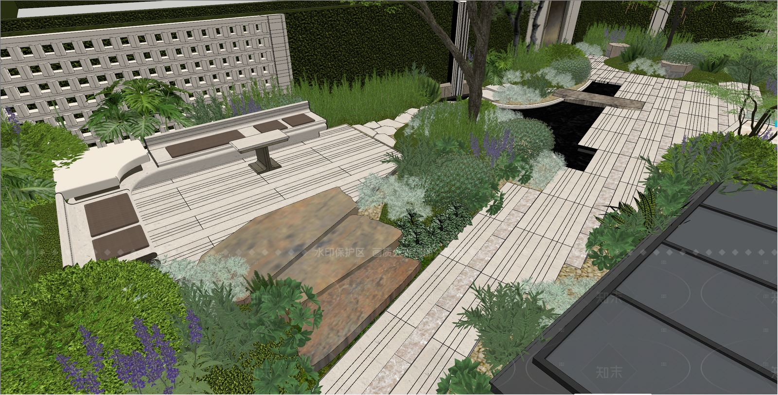 现代简约别墅庭院 样板间庭院 私家庭院 屋顶花园 下沉庭院