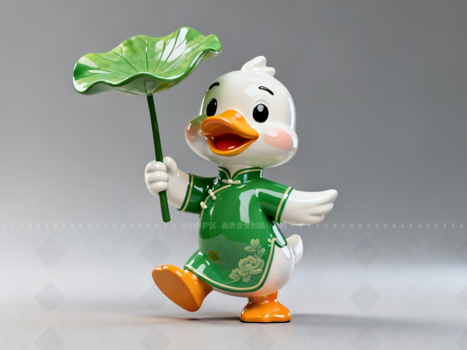 新中式雕塑 小鸭子 旗袍 雕塑 荷叶 AIGC
