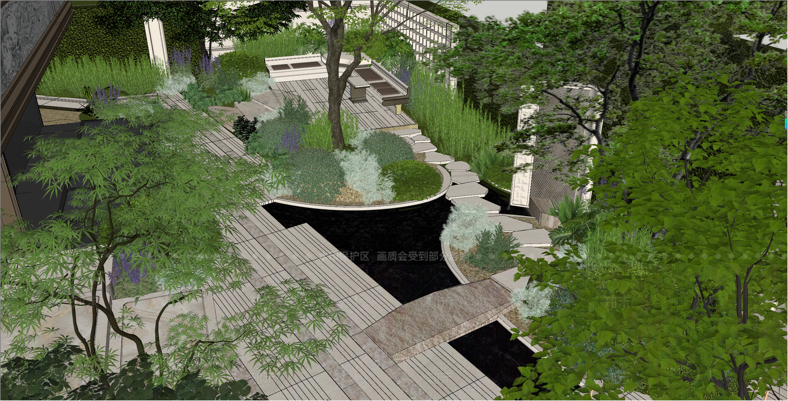 轻奢简约别墅庭院 私家庭院景观 样板间花园景观
