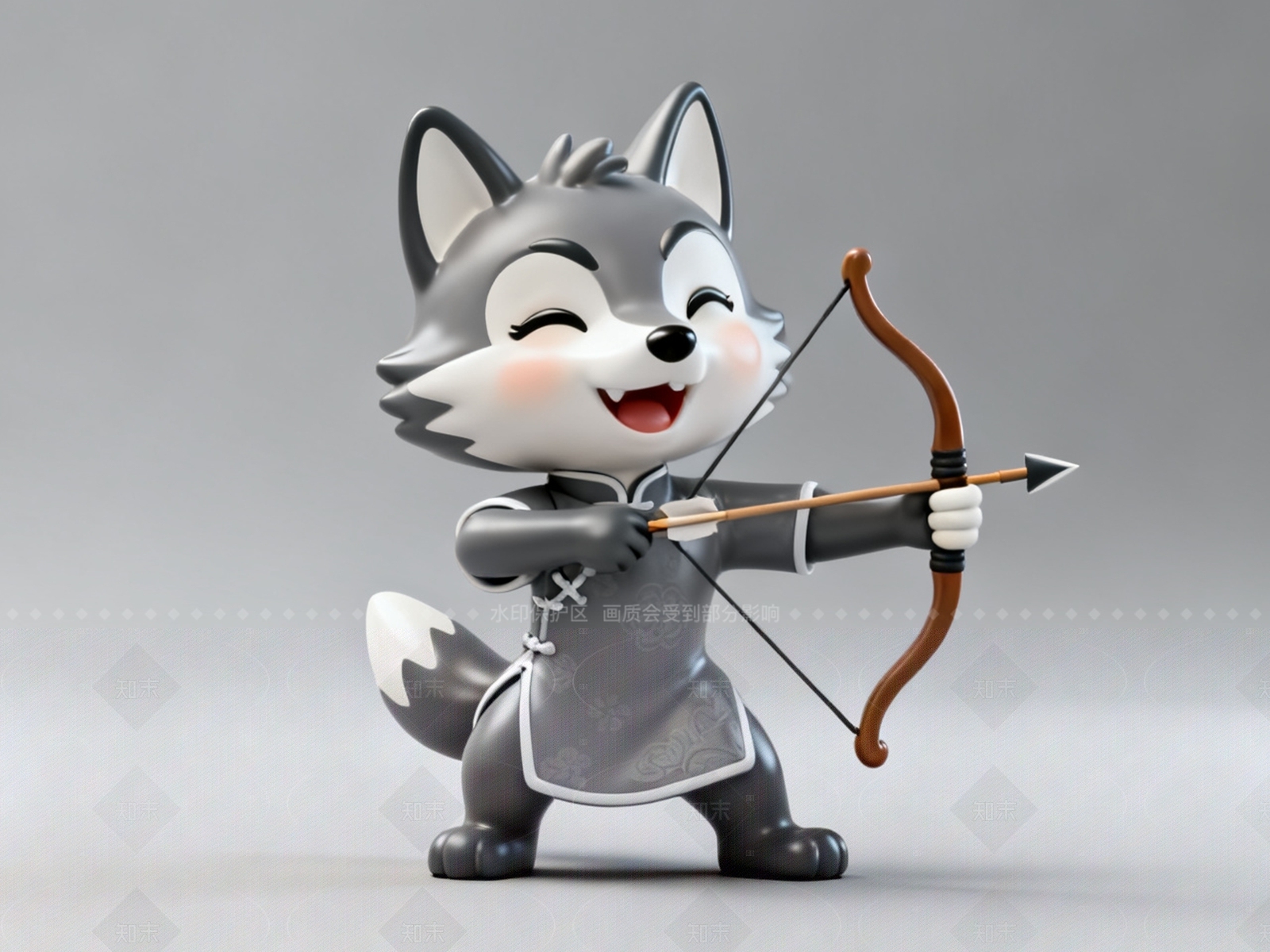 - 现代雕塑 灰狼 射箭 旗袍 雕塑 AIGC
