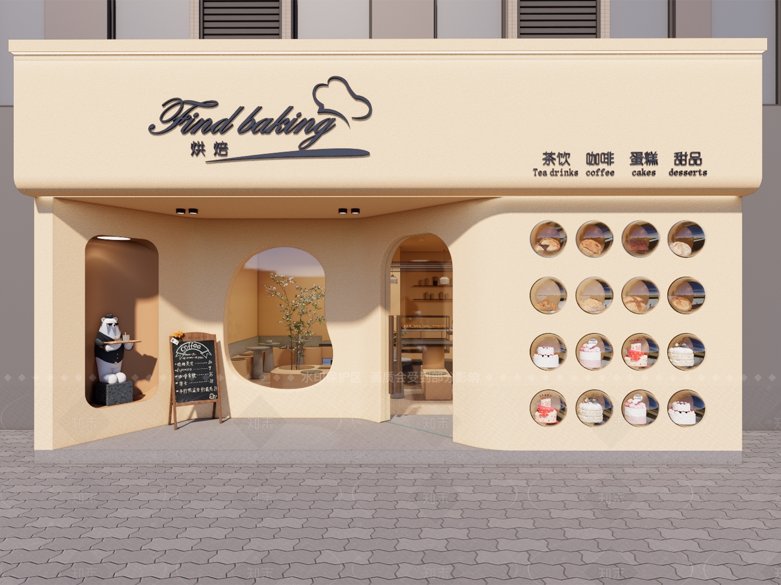 奶油简约招牌 奶茶店门头 蛋糕店外立面 甜品店