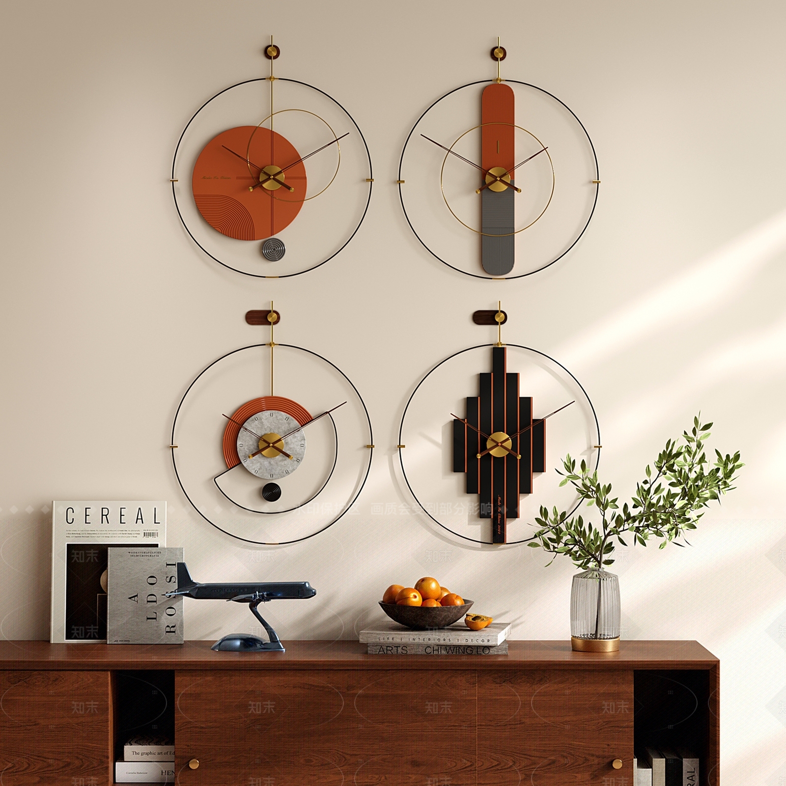 现代极简钟表 现代极简钟表 挂钟时钟 花瓶花艺 饰品摆件 水果书籍