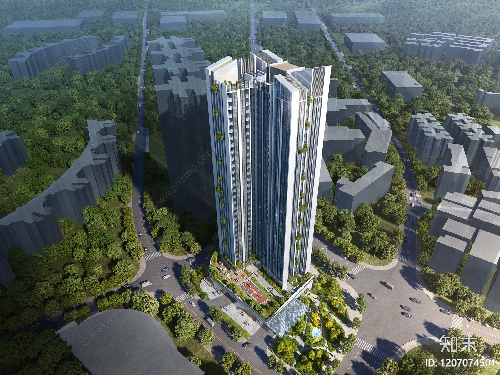 现代极简高层住宅 现代高层住宅立面 社区配套空中运动 城市核心区高密度 生态化住区景观 金属线条住宅外立