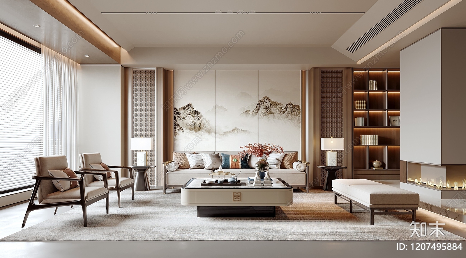新中式中式家居客厅 会客室 别墅客厅 沙发背景墙 小户型客厅