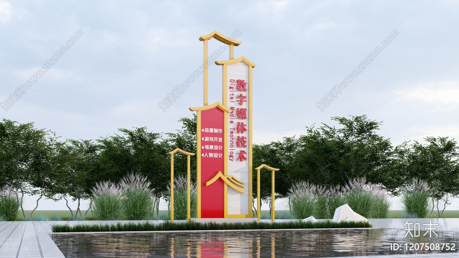 - 现代简约精神堡垒 科技导视 现代导视 导视立柱 月球基地 公园导视
