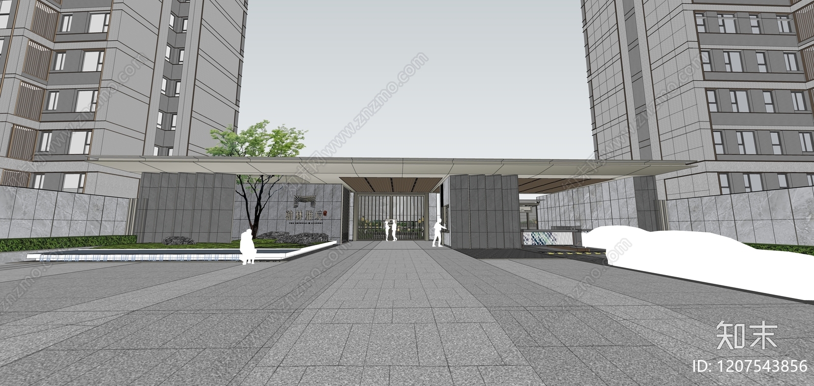- 现代轻奢小区景观 小区主入口 入口大门 建筑门头 景观轴线