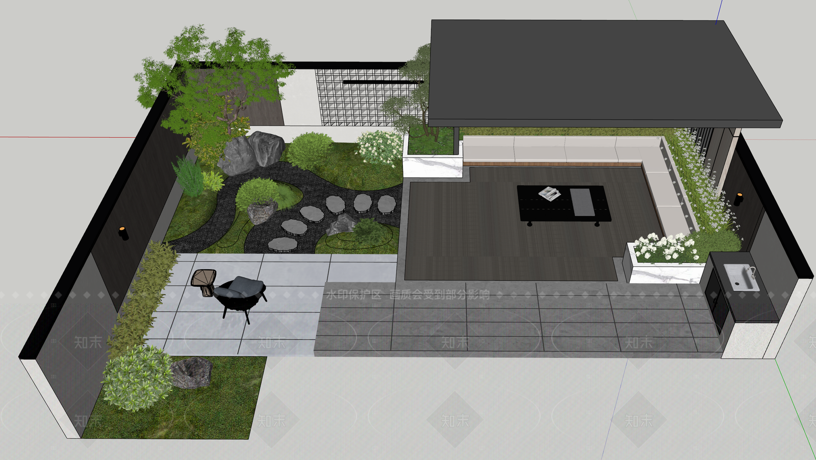 - 新中式别墅庭院 小院景观 庭院 民宿小院景观 院子